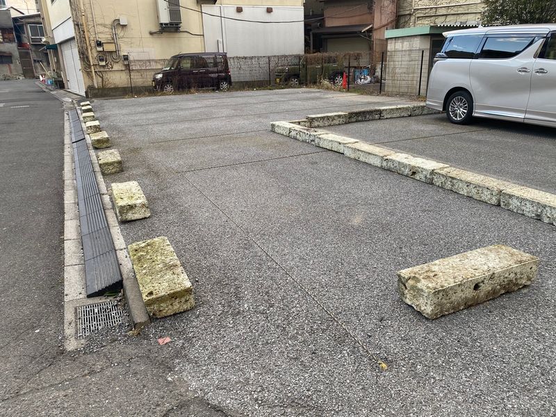 広い敷地にアスファルトで整地された駐車場。トラロープで駐車スペース区切ってあります。車道からスロープ板で上がるスペースは、あるのですが大谷石が置かれて上がれません。駐車場中側には、中心を区切るように大谷石が置かれています。何かの目的があって、土地のオーナーさんは、大谷石を置いたのでしょう。大谷石は、このひとつで60kgほどあります。二人でないと、よけられません。置くだけ、そうは、動かない重量物なのです。